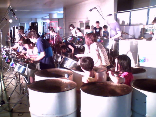 子どもたちの音楽ワークショップは毎年開催しており、スキヤキ・スティール・オーケストラのメンバーのてほどきを受け、ライブでは約20人の子どもが腕前を披露しました。