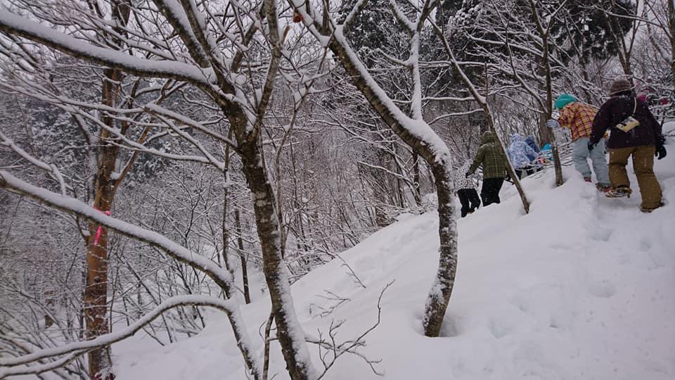 今回は、初日にスノーシューハイキング、かまくら造り、クラフトづくり。二日目に芦峅(あしくら) かんじきを履いてのトレッキングにタイやチューブそり遊びと盛りだくさんの活動でした。帰りのバスが山道でスタックして迎えに来れなくなるなどのトラブルはありましたが、活動そのものは順調に終えることができました。