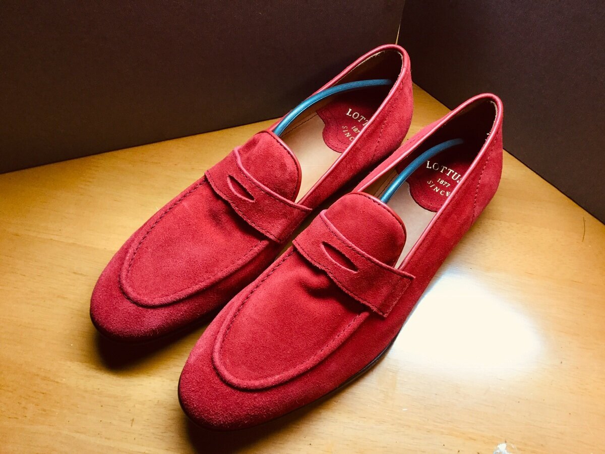 あまり履く機会はないかもしれませんが、20代前半にバンドをやっていたころ真っ赤なエナメルのコインローファーを履いていて、つい赤いローファーが欲しくなって手を出してしまいました。