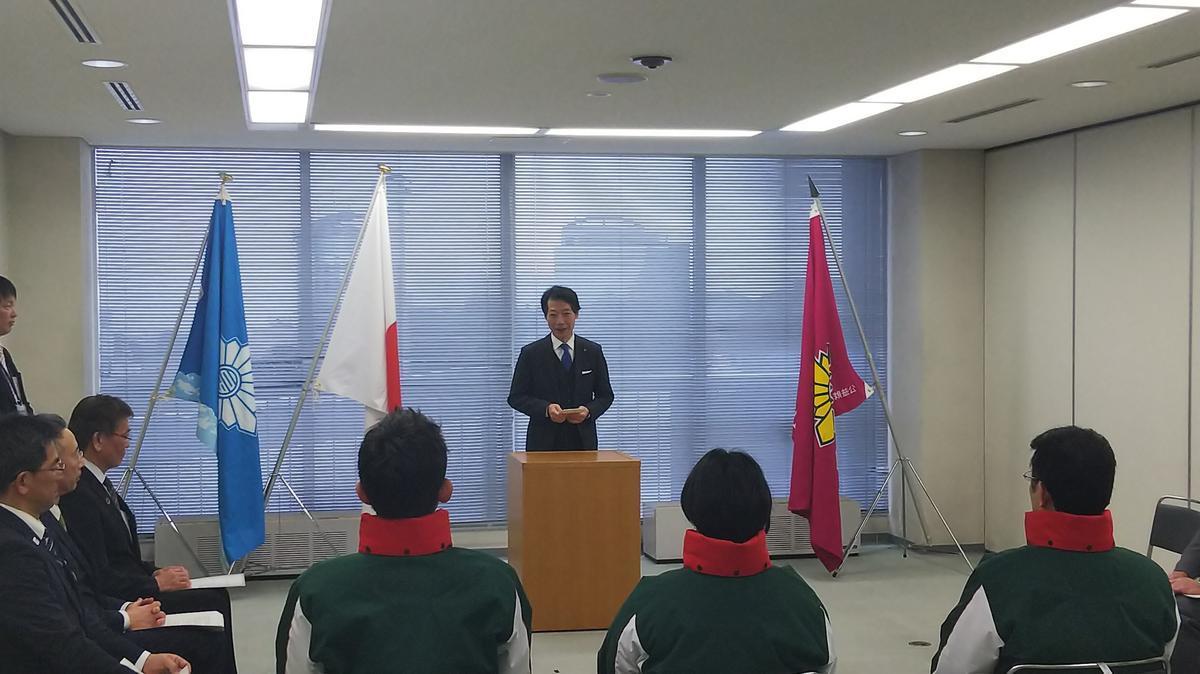 「北国の 雪と氷に 刻む夢」を大会スローガンに、1月30日から2月3日まで釧路市で開催される、第74回国民体育大会冬季大会スケート競技会・アイスホッケー競技会のスケート競技富山市選手壮行会に出席しました。