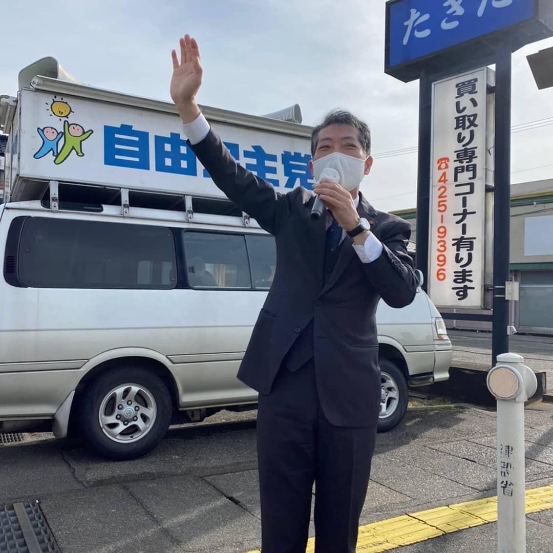 田畑裕明衆議院議員らとともに市内を駆け巡り、提言して実現した教育委員会のコロナ対策会議や、市民病院の状況などを報告、来春の市長選挙・市議会議員選挙に向けて、引き続き人口減少社会に対応したまちづくりを進める必要性について訴えました。