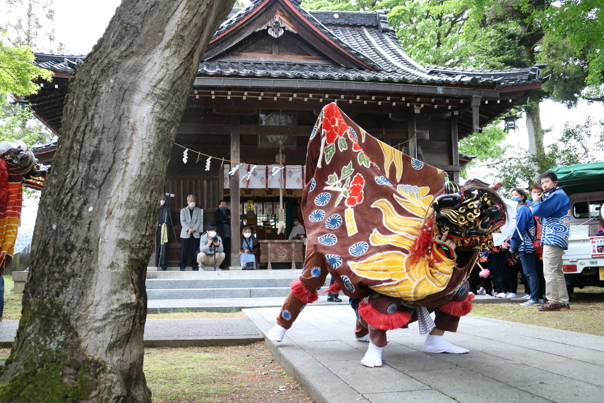 昭和の日である4月29日に布瀬町獅子舞奉納を行いました。一昨年は中止、昨年は踊り子の小学生の踊りたい!というリクエストもあり、松尾神社のみの奉納を行いました。