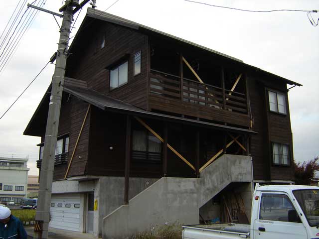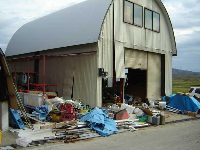 作業内容は農家の納屋の片付けと壊れた家の応急処置でしたが、ボランティアセンターから指示された家の隣では老人と壮年の主婦が梯子に登って壊れた外壁の応急修理をしようとしていましたので、そちらの作業も行いました。