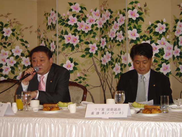 このあと私たちは国会に、文喜相(ムン・ヒサン)ウリ党議長(党首にあたる)、û「基善(ペ・ギソン)ウリ党事務総長、金富謙(キム・プギョム)ウリ党院内主席副代表を訪ね、議長の講演を伺い、意見交換してまいりました。