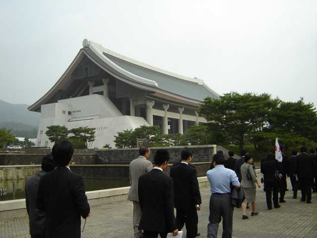 正門から献花台まで儀仗兵による栄誉礼を受けながら進みました(一般の観光客に対してこのようなことはありません)。また写真では切れてしまっていますが、高さ30メートルの忠魂塔がそびえたち、その内部には朝鮮戦争の戦没者を中心に国のために亡くなった人々を祀っています。